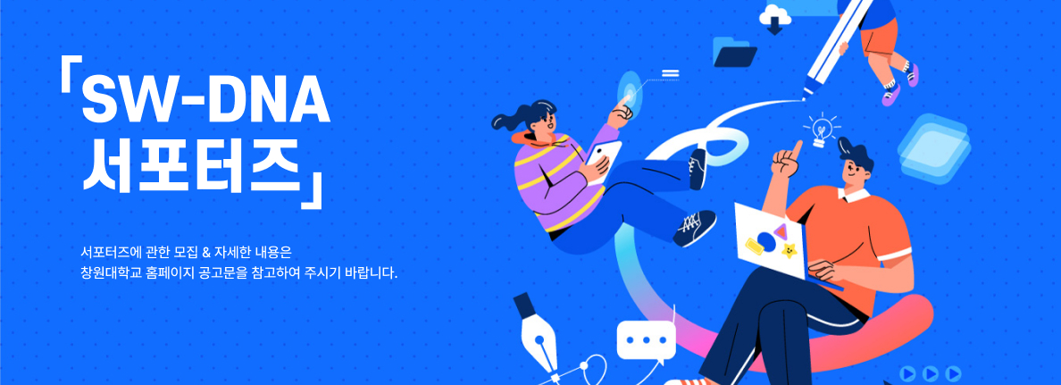 SW중심대학사업의 다양한 프로그램을 효과적으로 홍보하고 활성화하기 위해 교내 학생들로 구성된 SW사업 홍보단